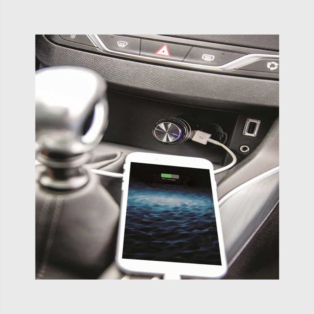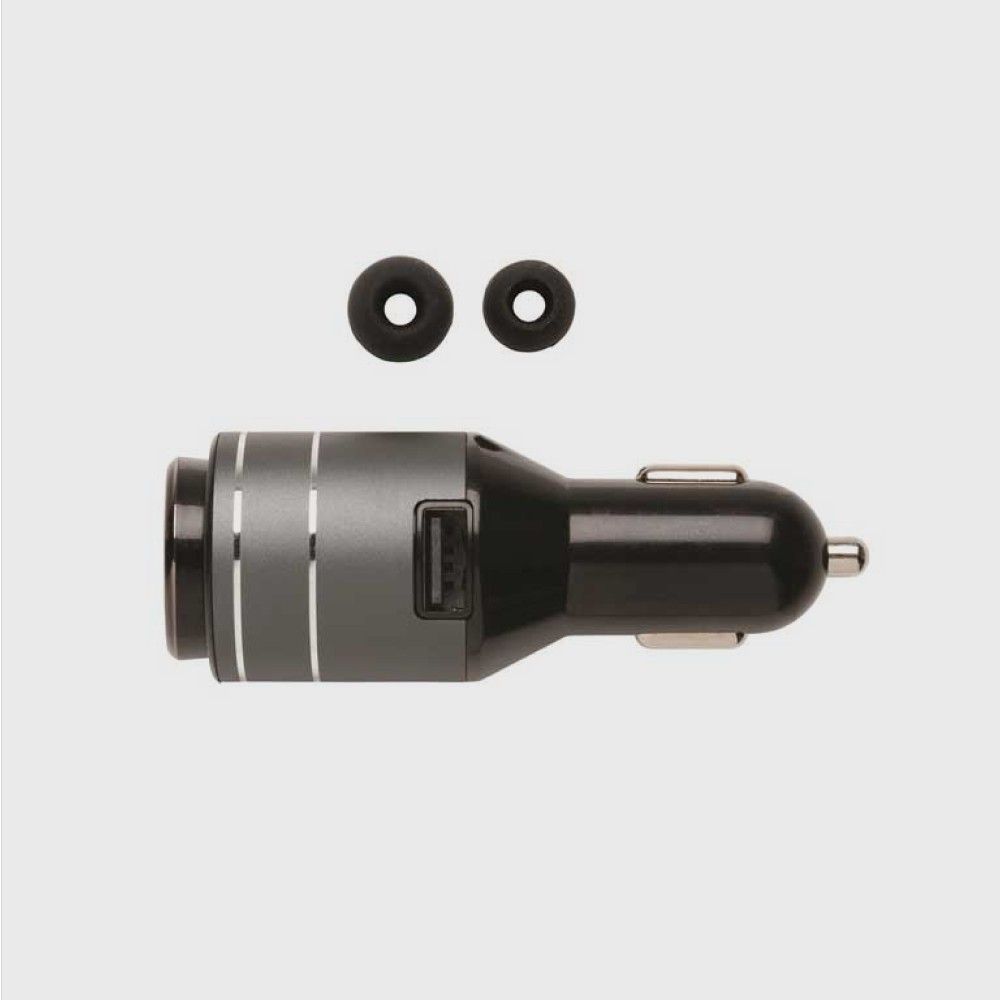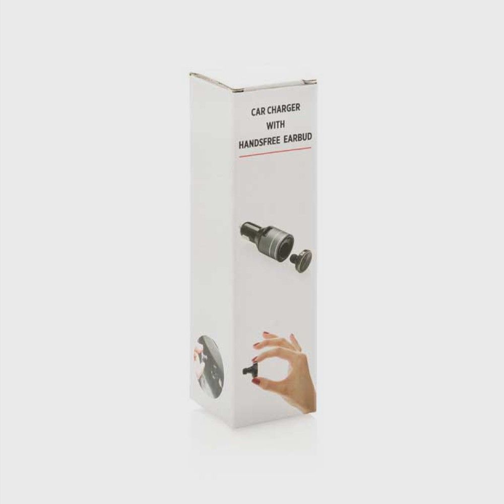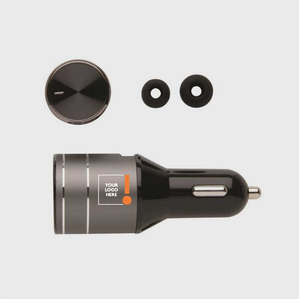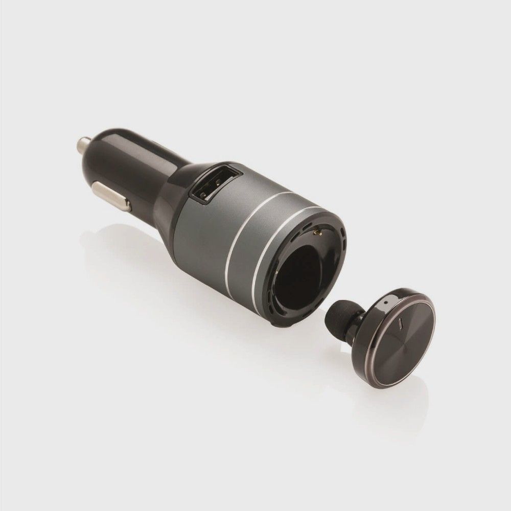 Car charger with integrated wireless earbud using wireless BT 4.1 for perfect connection. The magnetic top of the charger allows you to easily place the earbud back in the dock to charge it. The charger is suitable for all mobile phones. The earbud comes with additional ear tips in different sizes to get a good seal. ABS material. Input 12-24V/output 2.1A.