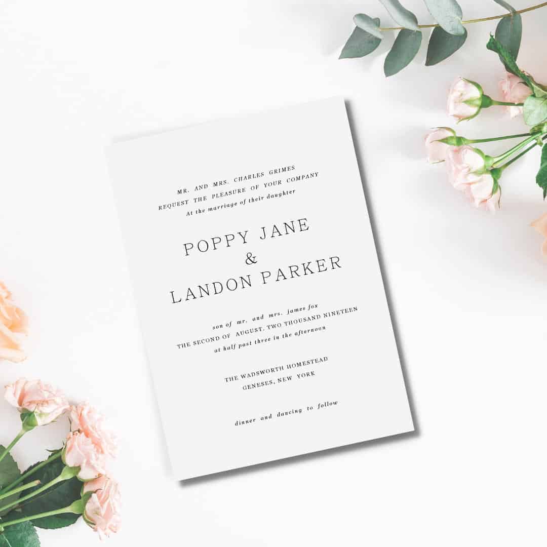 Simply basic and classy! No need for drama or extras. This wedding invitation works perfectly for the highly intellectual.