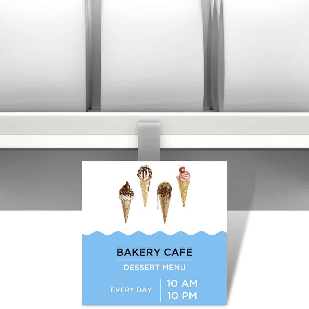 It’s time to up your marketing strategies! Let everyone know that there’s something available for them by using our shelf wobbler to send a quick message to potential clients. From discounts to special announcements including a new menu, this wobbler attached to your shelf waves at people getting their attention to read what’s printed on the card. It’s also a perfect way to increase awareness about a new product or new changes with your product prices.