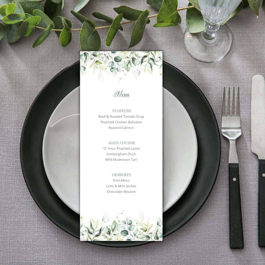 Printed with high-quality 350gsm paper measuring 10 by 23 cm, the Greenery Party Menu comes in matt and gloss art paper options. With fully customizable templates available, you can place your order rest assured that we’ll print and ship an excellently finished product to your doorstep.
