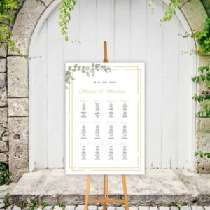 Let your guests know their seating with eye-catchy Seating-Chart with royal golden borders.