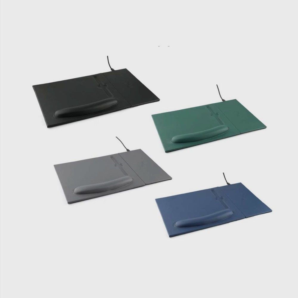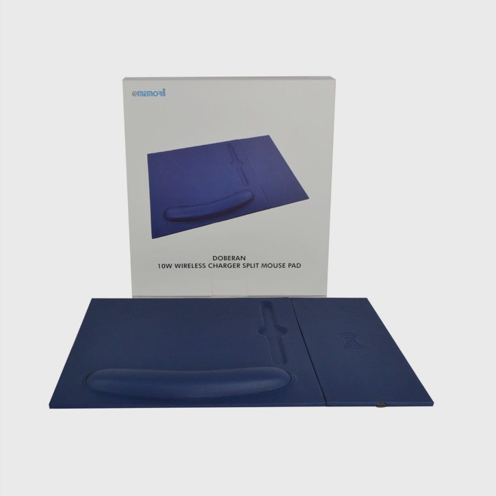 Doberan is a 2-in-1 mousepad with detachable and attachable 10W wireless charger pad. Using 2-way magnets, the wireless charger pad can be detached and attached to the left or right side of the mousepad, providing a nice adaptability to left or right handed users. The mousepad has an in-built ergonomic wrist rest with cushioning. Packed in a gift box