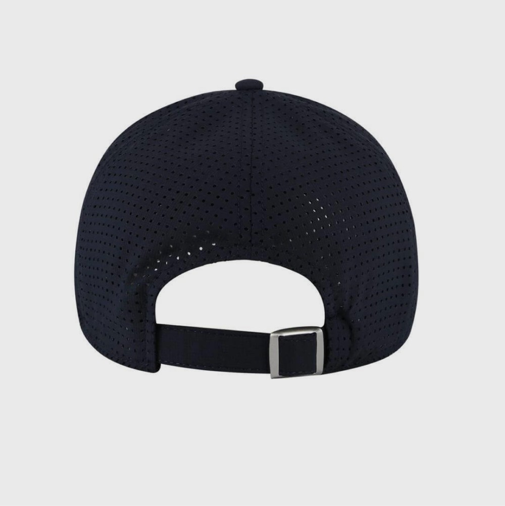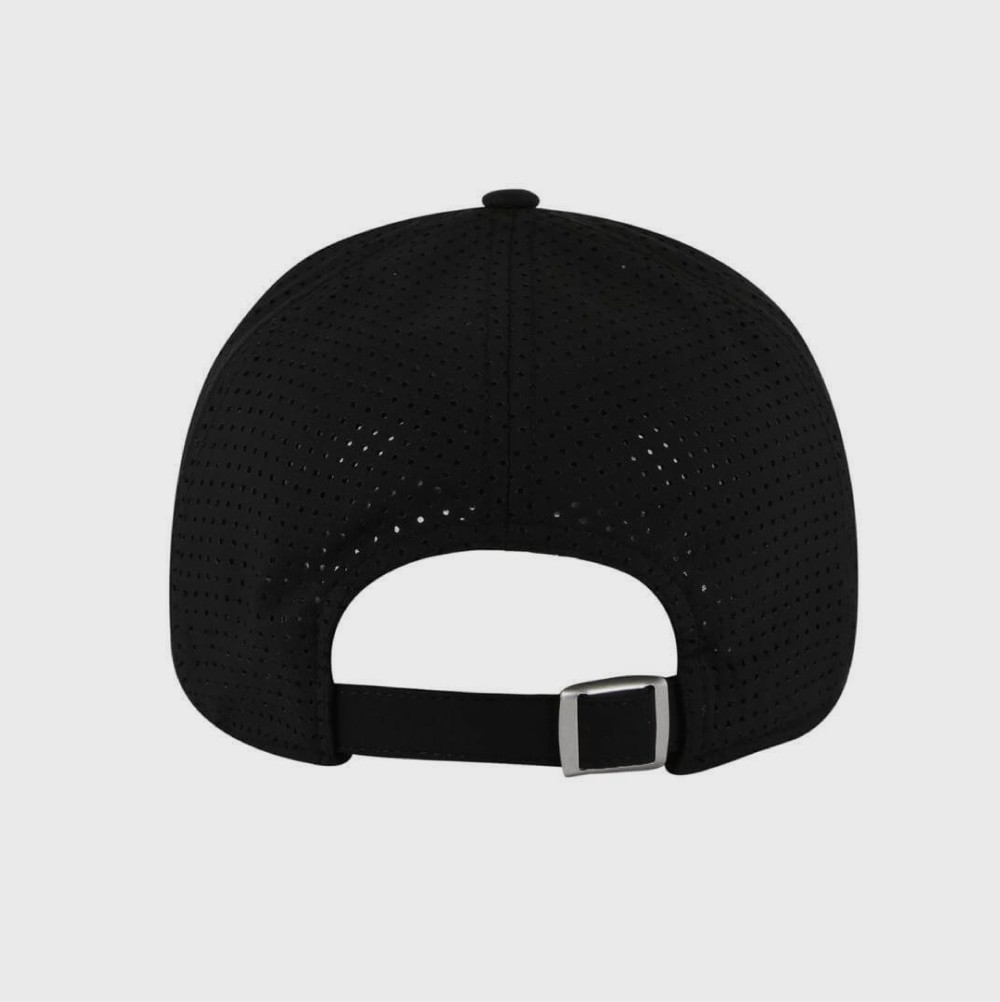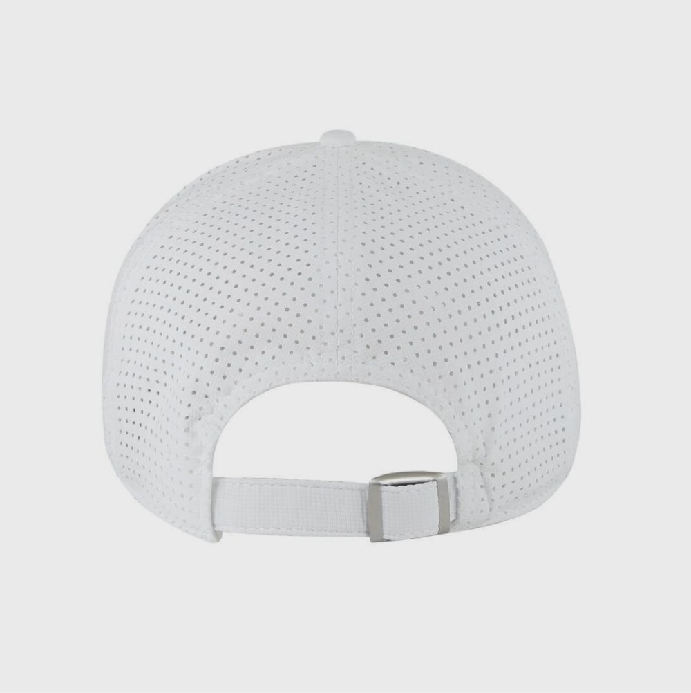 Ace is a structured, fitted five-panel sports cap featuring DryNCool proprietary moisture management, an adjustable metal buckle, and a curved visor. Fine laser-cut holes on the sides and back add ventilation, keeping you cool and comfortable in the sun or while playing sports. A classy and sporty design!