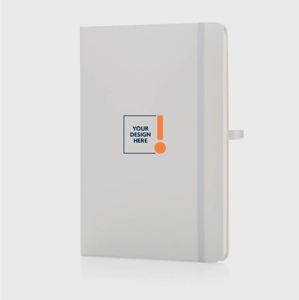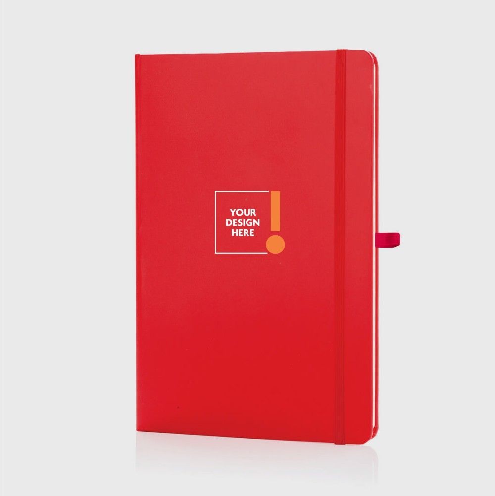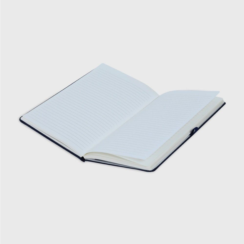 Bukh Hardcover A5 PVC notebook with matching coloured 3mm elastic closure, 192 ruled pages, 70gsm. Every notebook is thread bound and comes with rounded corners, a bookmark, a penloop, an elastic closure and an expandable inner pocket. Packed in a gift box.