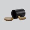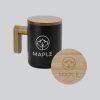 Crafted with sustainability in mind, the handle and lid are meticulously fashioned from bamboo, complementing the sleek black porcelain exterior. This unique combination not only exudes modern elegance but also seamlessly integrates into various workplace environments.