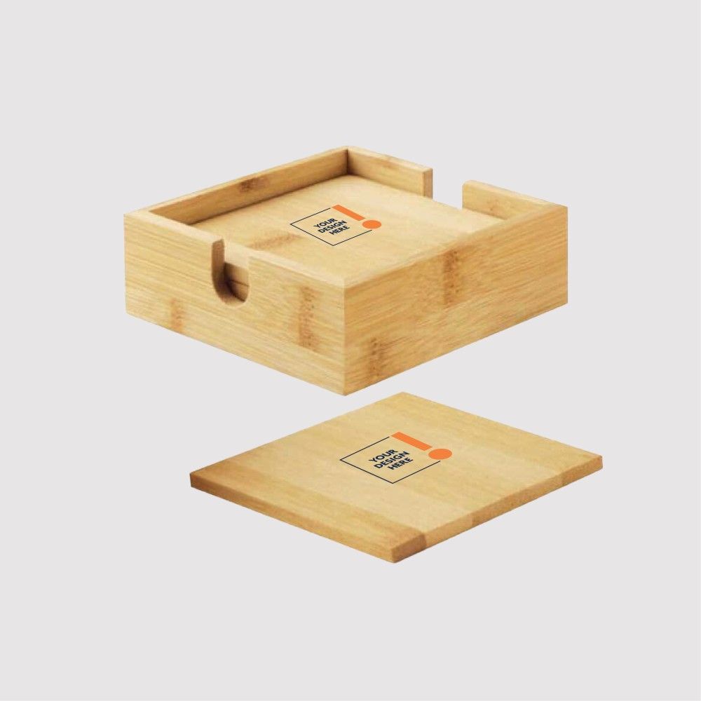 Our Eco-Friendly Bamboo Tea Coasters 4-Piece Set with Case, offering both functionality and style while making a positive impact on the environment. Say farewell to water-damaged tables with these bamboo coasters that not only protect your furniture from stains and scratches but also enhance any decor with their natural wood aesthetic. Designed to hold beverages securely and prevent moisture from seeping through, these coasters are both practical and aesthetically pleasing. Crafted from sustainable bamboo, they embody eco-conscious living while providing reliable protection for your surfaces. Ideal for home use or in office settings, these coasters offer branding options, allowing you to print your logo or message directly onto them.