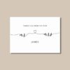 Featuring a bi-fold card with the inscription “Thank You from the new Mr. ♥ Mrs.” printed in black characters on a white background, this card is fully customizable. You can easily add your text on the interior pages. Change the design to one of the pre-existing templates or simply upload yours.