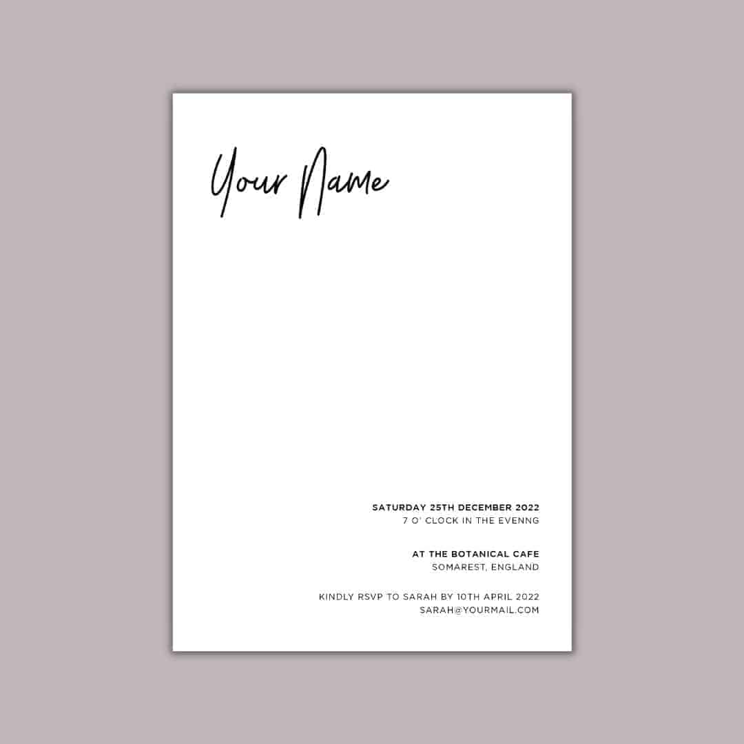 Designed with simplicity, our classic invitation cards are designed to make a statement of class and style while inviting your friends and loved ones to celebrate with you. Designed and printed on the two pages of the card, this card features space for an image in grayscale with a suitable text to match your invitation while the alternate page has the RSVP information as well as contact details in case your invites need to know more.