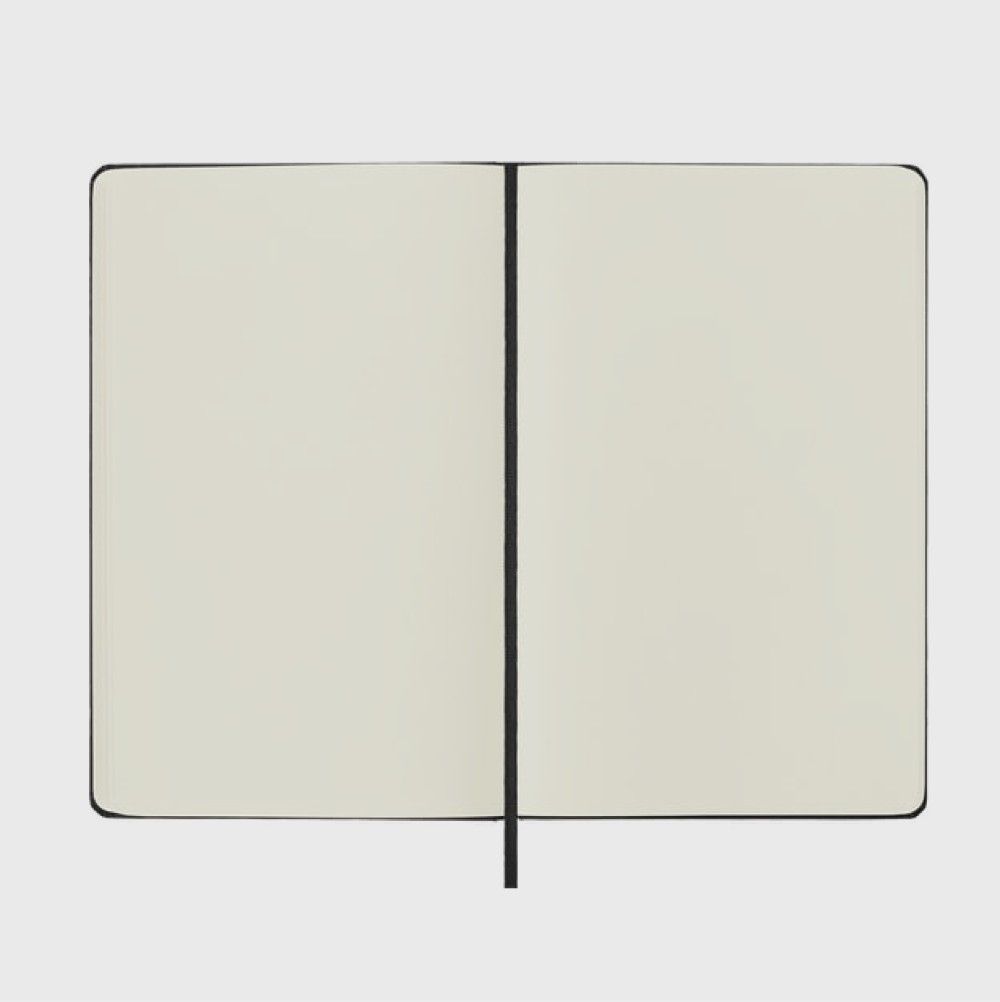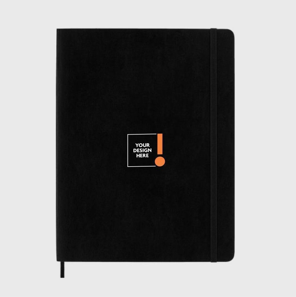 Moleskine® XL soft cover notebook, ruled, rounded corners, elastic closure.