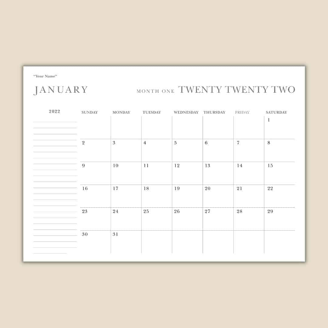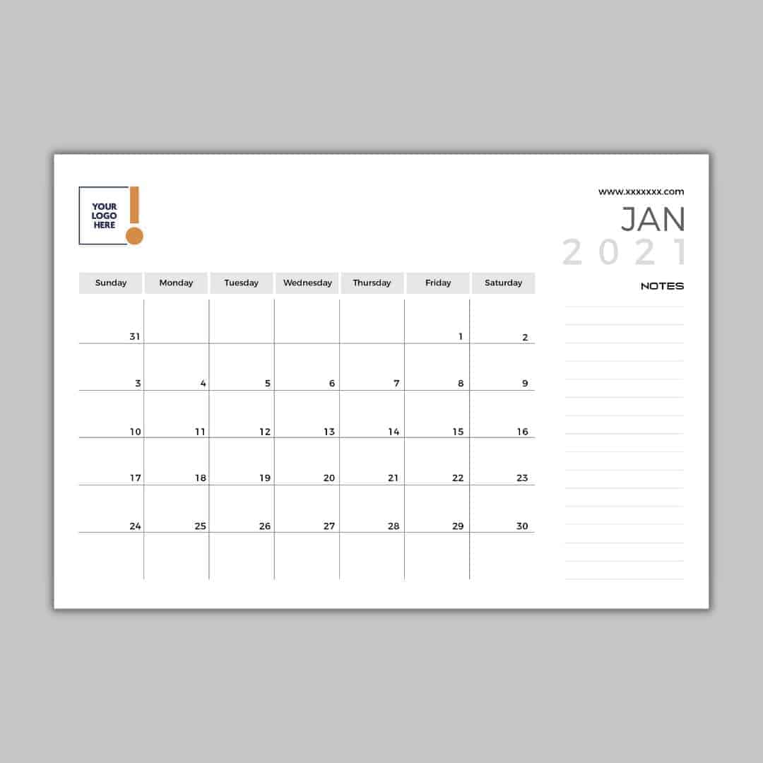 Painstakingly designed to accommodate different needs, our monthly desk planner features a space for your brand logo by the top left, space to write down your plans for each day of the month, and a right-side pane designed to accommodate extra notes.