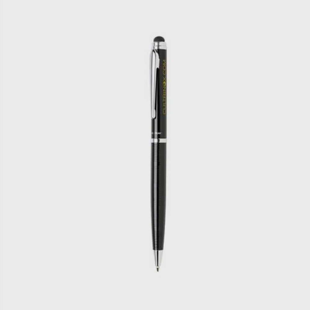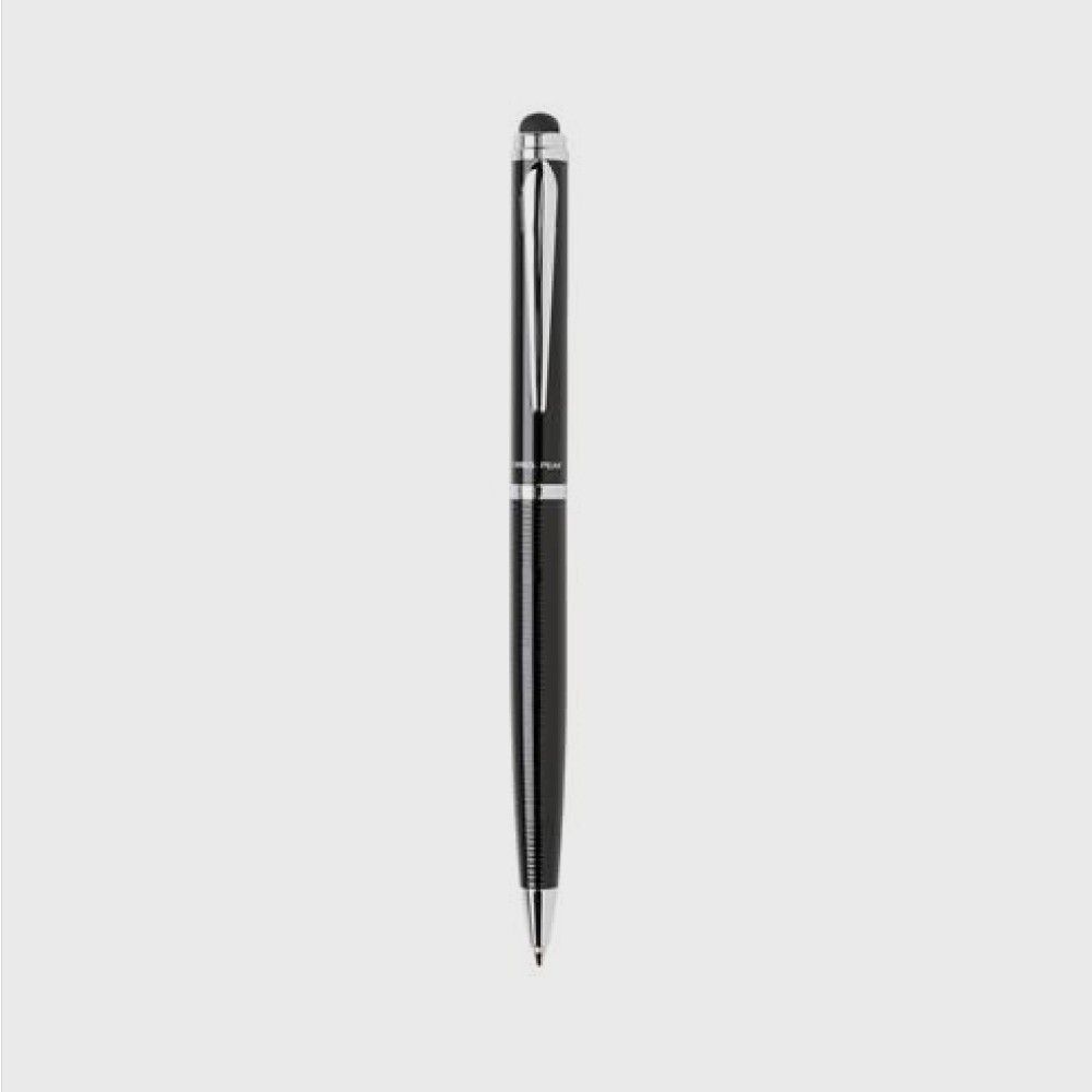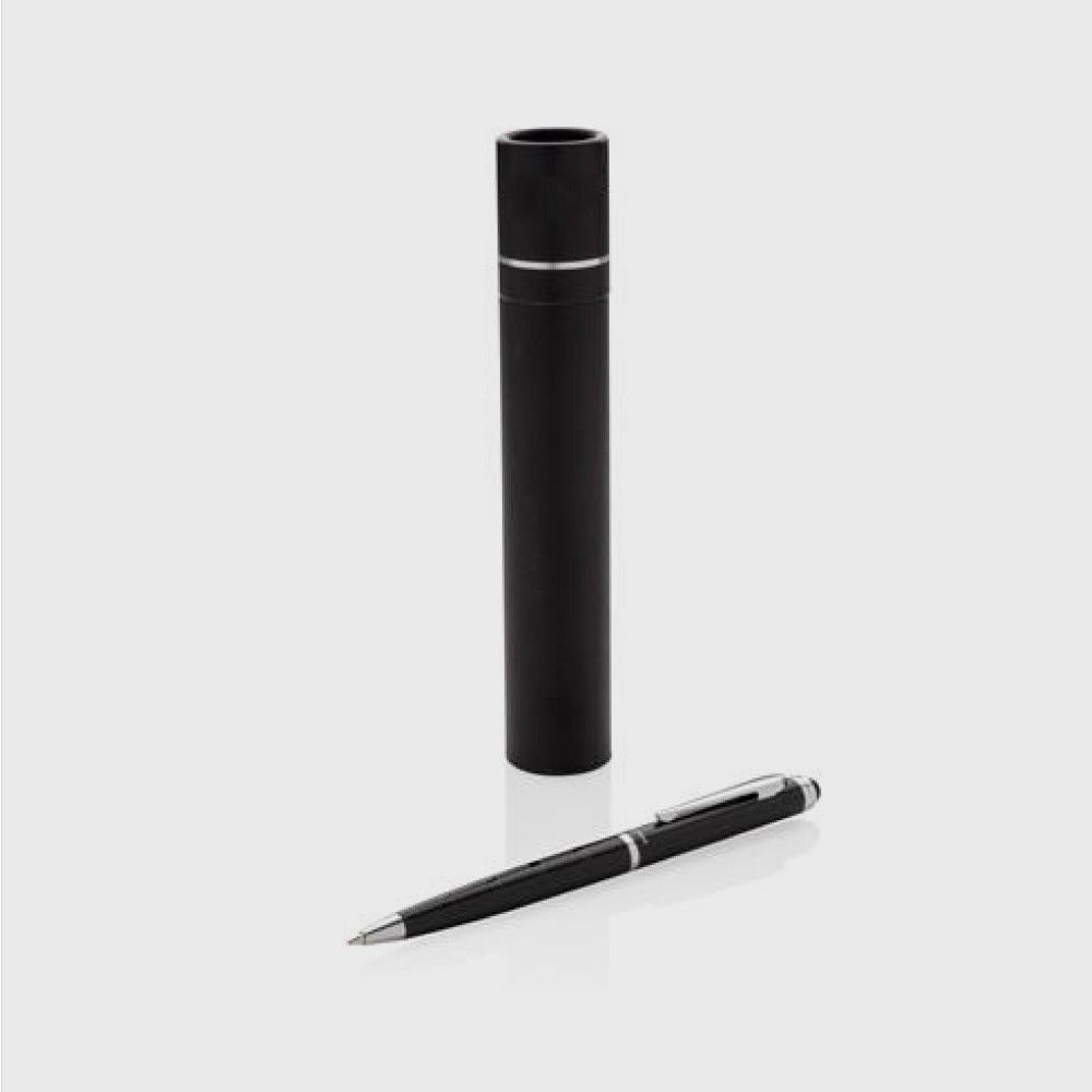 Unique styled pen with a luxury lined pattern on the barrel. This exclusive designed stylus ballpoint pen is an attractive, high quality gift. Including Swiss Peak tube giftbox. Blue ink.