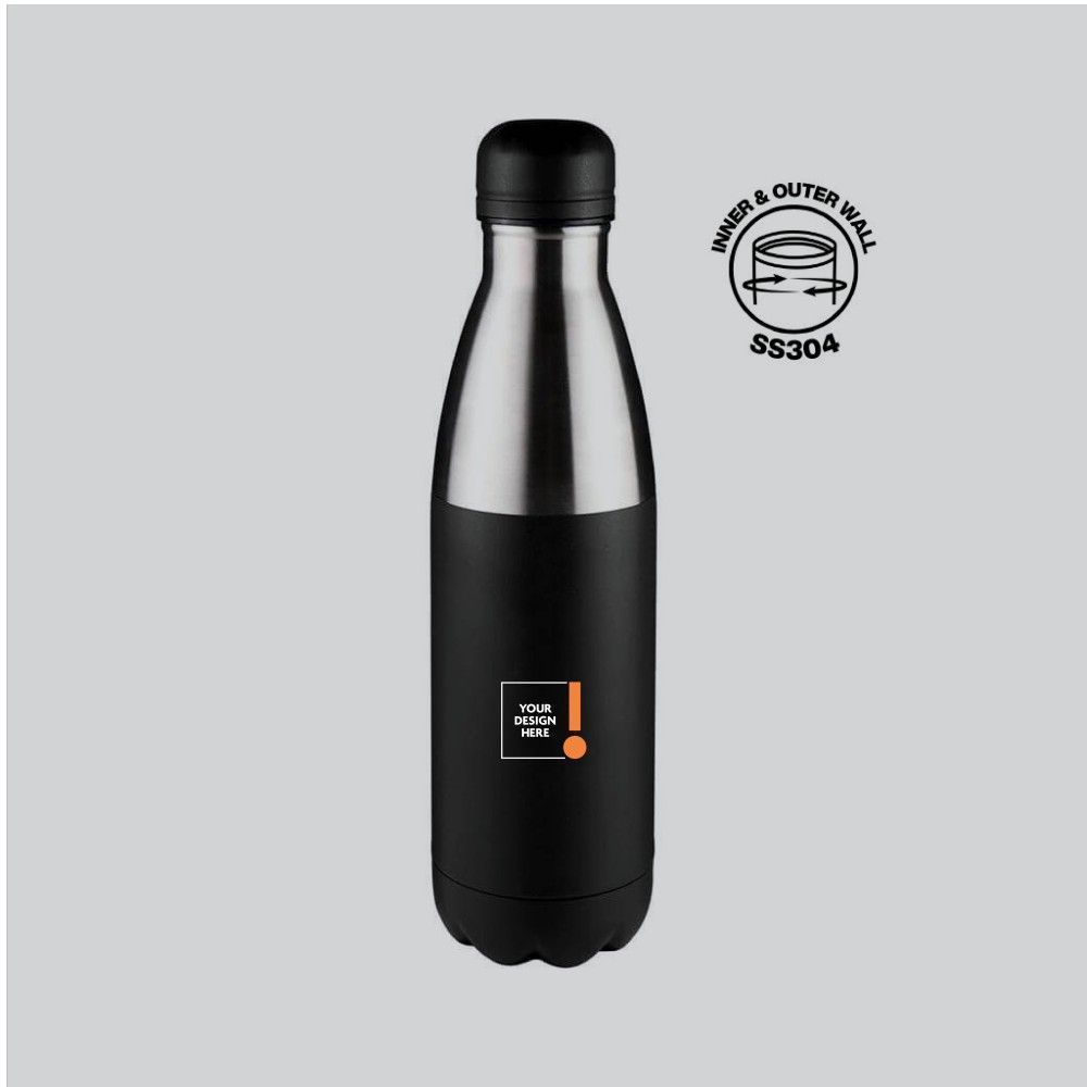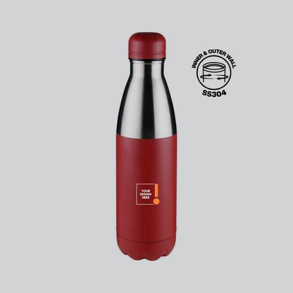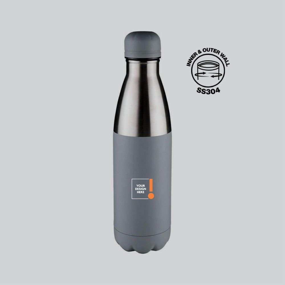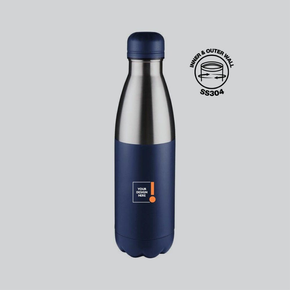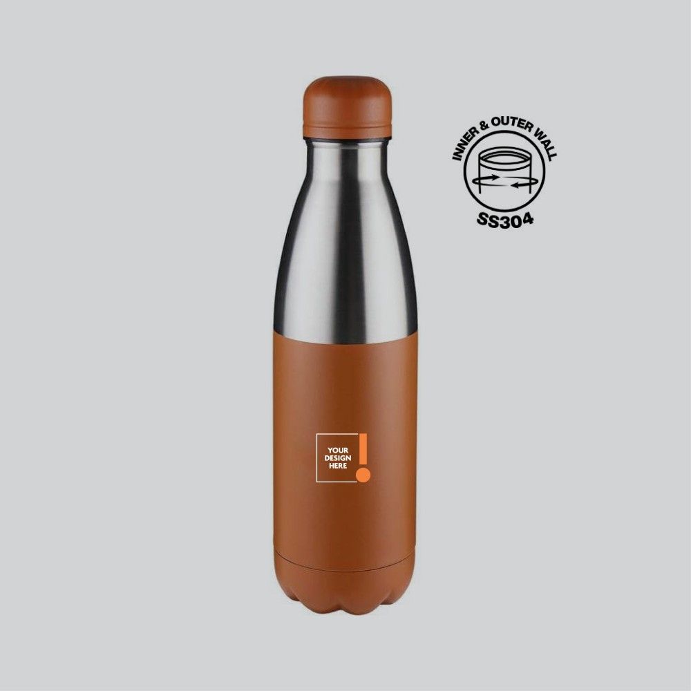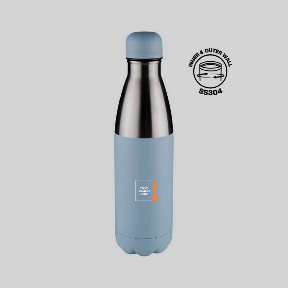 Classic double-walled vacuum insulated water bottle, crafted from corrosion-resistant 304 grade stainless steel inside and out. Its unique half-coating offers an elegant appearance with a stone-touch powder coating feel. This bottle is leakproof, keeping beverages hot for up to 6 hours and cold for up to 12 hours. Perfect for carrying 500ml of your favorite drink in style and temperature-controlled comfort.