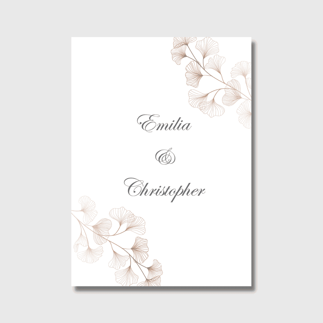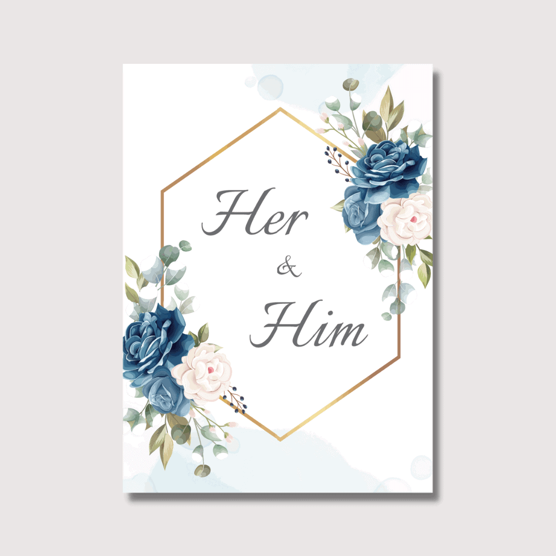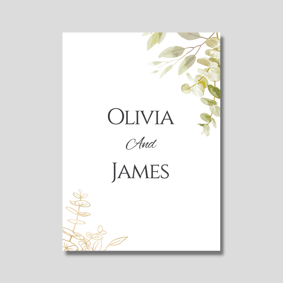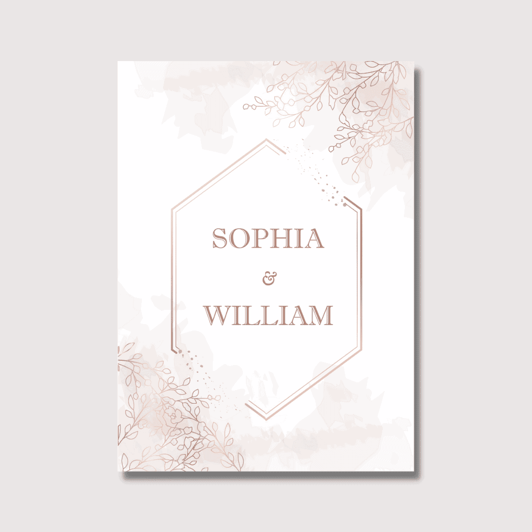 The design features elegant floral-patterned murals along with names of couple in a cursive font. You can customise your template and add on elements giving more of a personal touch.