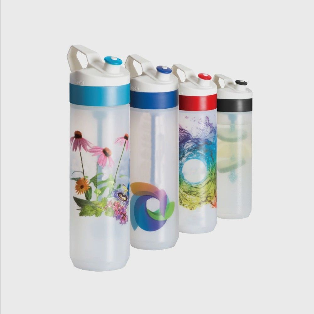 Trendy infuser bottle to flavour your water with your favourite fruit or herbs. The body is made out of bio-degradable and bio based material. The lid is made out of ABS and is leakproof so you can take your flavoured water wherever you go.