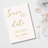 It’s time to celebrate! Spread the news to your friends and let them know you’re ready to walk down the aisle using our “Golden Save the Date Cards”.