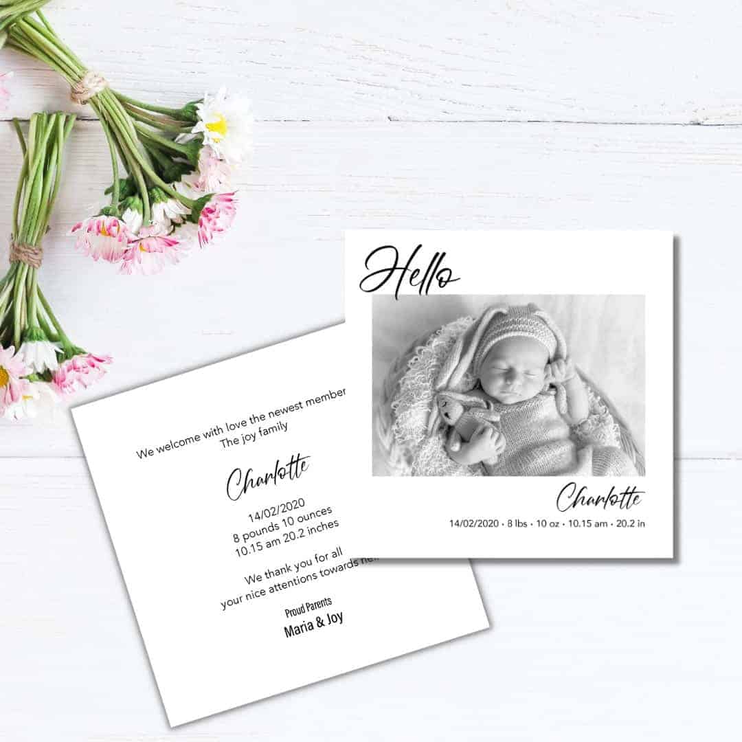Designed and printed with high-quality paper, this announcement card comes printed on a folded 350gsm paper measuring 10.5 x 14.8 cm on each side of the fold. It also features a matt or gloss art paper option.