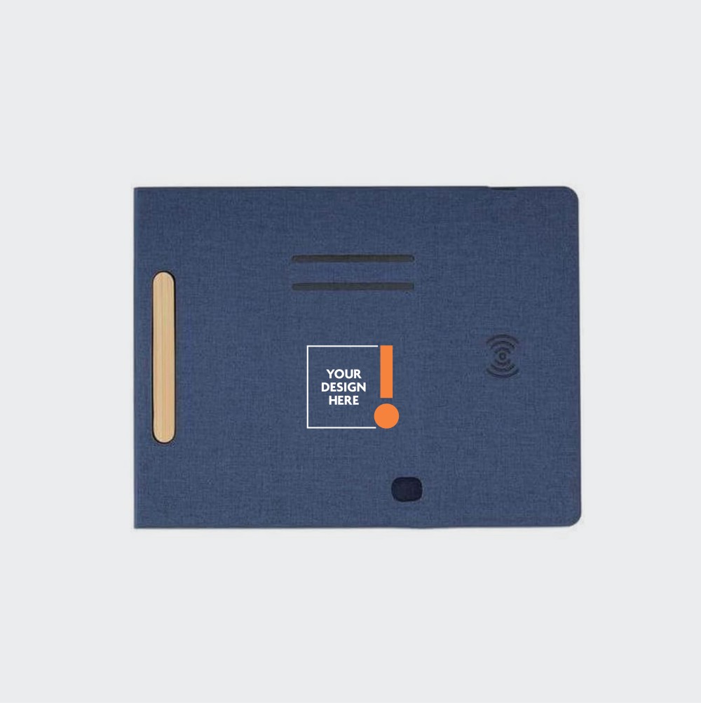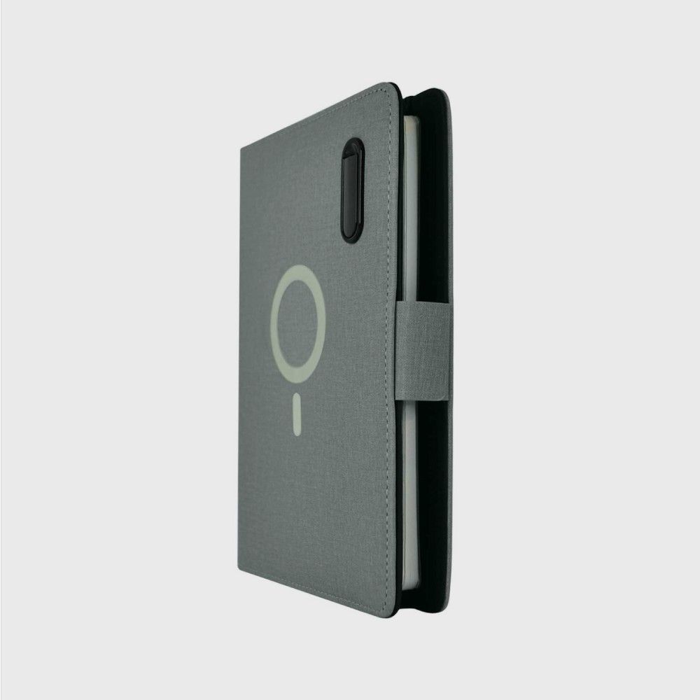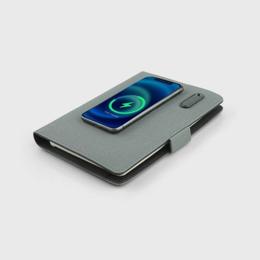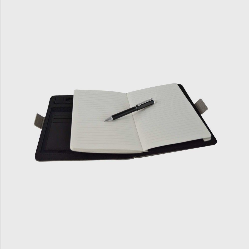 MagSafe Smart Notebook Portfolio combines design elegance and latest magnetic charging technology. With an impressive 8000 mAh powerbank, 10W MagSafe magnetic wireless charging, 32GB USB in-built flash drive, numerous ports, card pockets, phone/tablet pocket, pen loop, phone vertical/horizontal stand and an elegant refillable A5 notebook with ivory paper. Snap your phone (iPhone 12 or higher) to the wireless charger and the phone will align perfectly with the magnets inside. The 10W wireless charger is compatible with all QI devices (Iphone 8 and up and Android devices). Packed in an elegant sliding gift box.