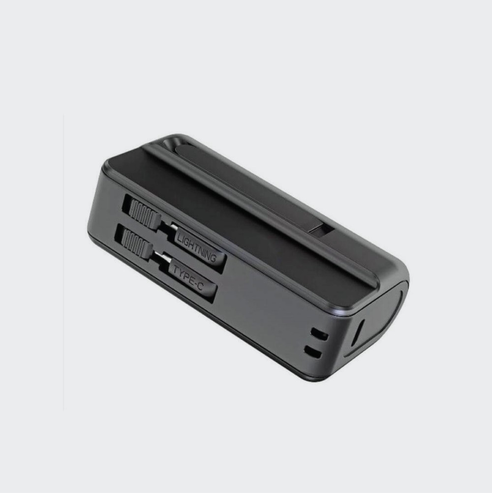 This compact 4500mAh mini powerbank features built-in Type-C and Lightning output pins for ultimate convenience. Its dual-purpose phone stand supports both horizontal and vertical orientations, making it perfect for travel and on-the-go use. Stay powered and hands-free wherever you are!