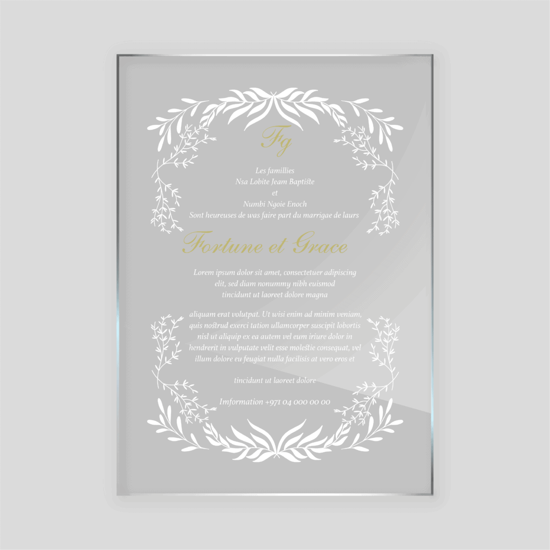 The Invites are made from acrylic plastic which are sturdy in nature with 2mm Thickness. Available in two options clear transparent acrylic material and frosted acrylic material. The edges are square shaped. These acrylic invites are printed on an acrylic stock with the help of digital printing machine that provides perfect colour effect on the Invite.