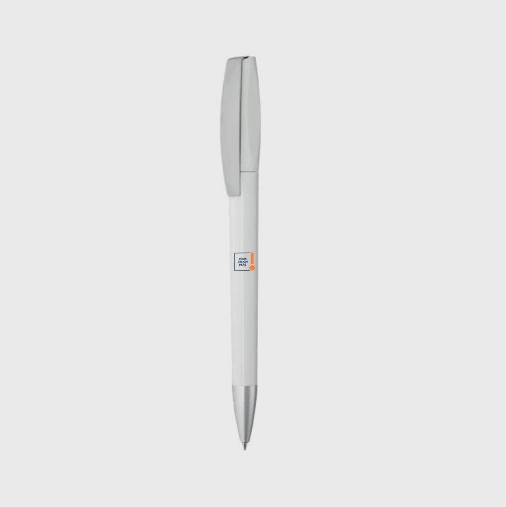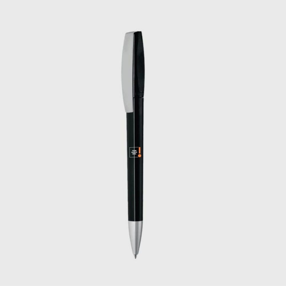 Twist ballpoint pen with shiny solid colored body, heavy, matt chrome metal tip, and metal clip. From UMA – a Climate-Neutral Certified factory in Germany