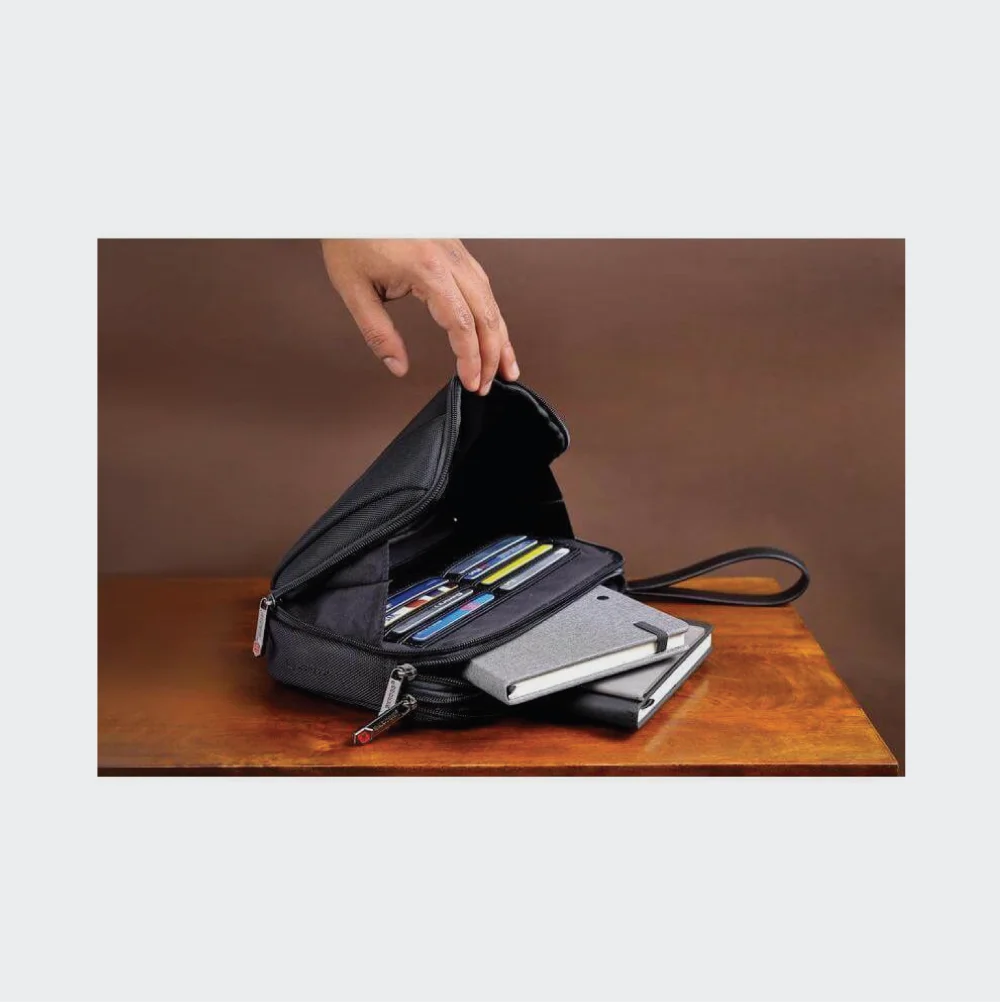 The SKROSS Alpha Travel Organizer is an essential travel companion. Featuring 3 separate zipper compartments, a front zipper, detachable carry strap, and 6 card pockets, it ensures everything stays perfectly organized for your journey. Ideal for quick packing and unpacking, this travel-ready bag keeps your essentials easily accessible.