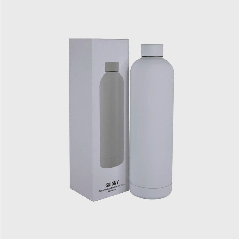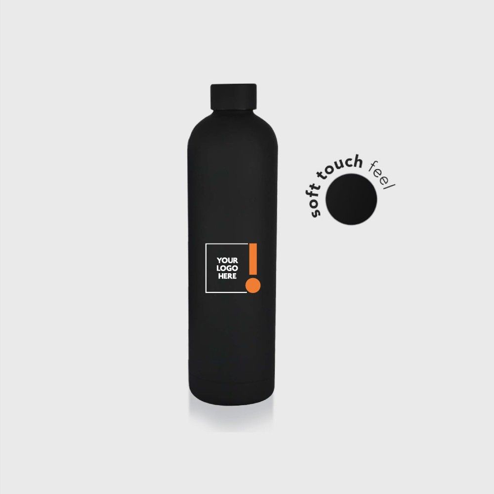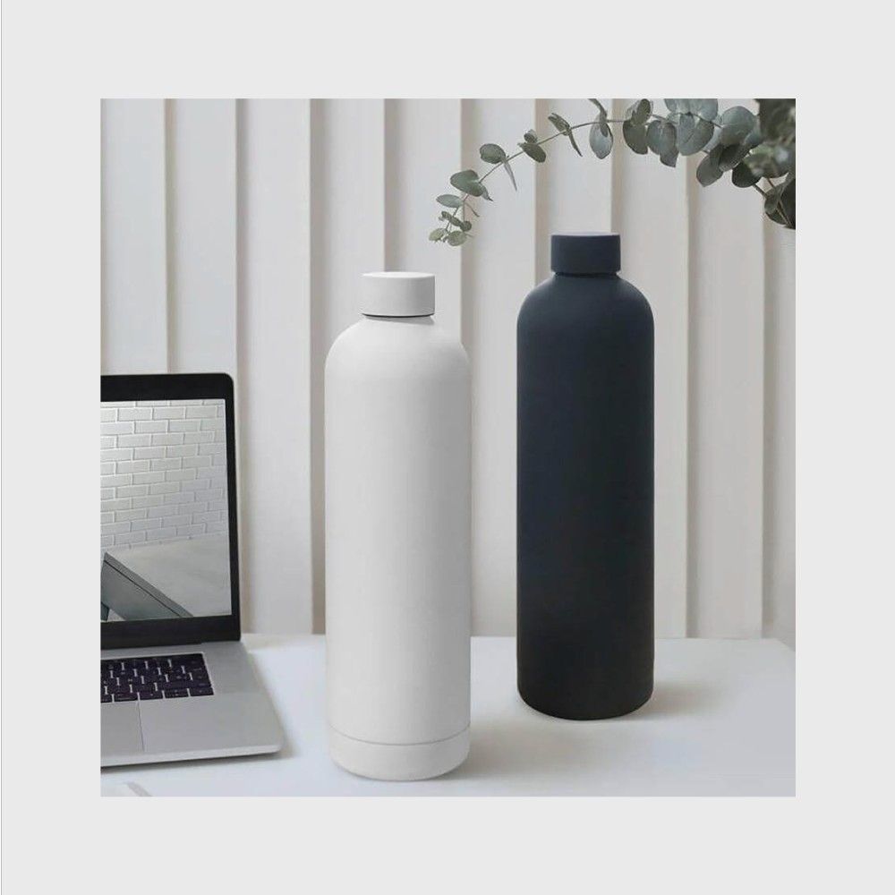 Double Walled Vacuum Insulated Stainless Steel Water Bottle with elegant soft touch coating. Leakproof lid.