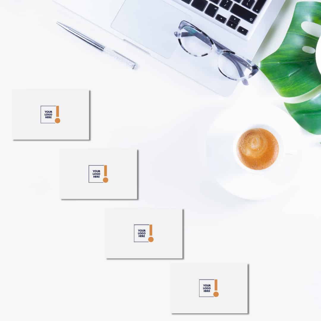 The standard-sized white business card featuring your logo at the centre is the most elegant approach with a minimal approach to design.