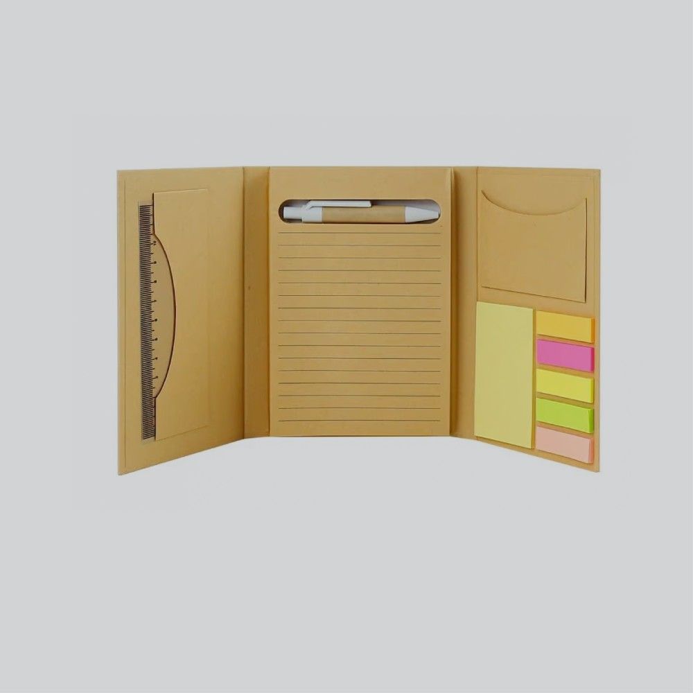Take your organizational skills to the next level with our Eco-Friendly Tri-Fold Notepad. Crafted entirely from recycled materials, this notepad is a testament to your commitment to a greener planet. It’s not just a notepad—it’s a versatile tool designed to meet all your daily needs. Whether you’re a student, a professional, or simply someone who values sustainability, this notepad has you covered. With its comprehensive features, including lined kraft paper, sticky notes, colorful flags, a ruler, and an eco-friendly pen, you’ll stay organized and eco-conscious at the same time