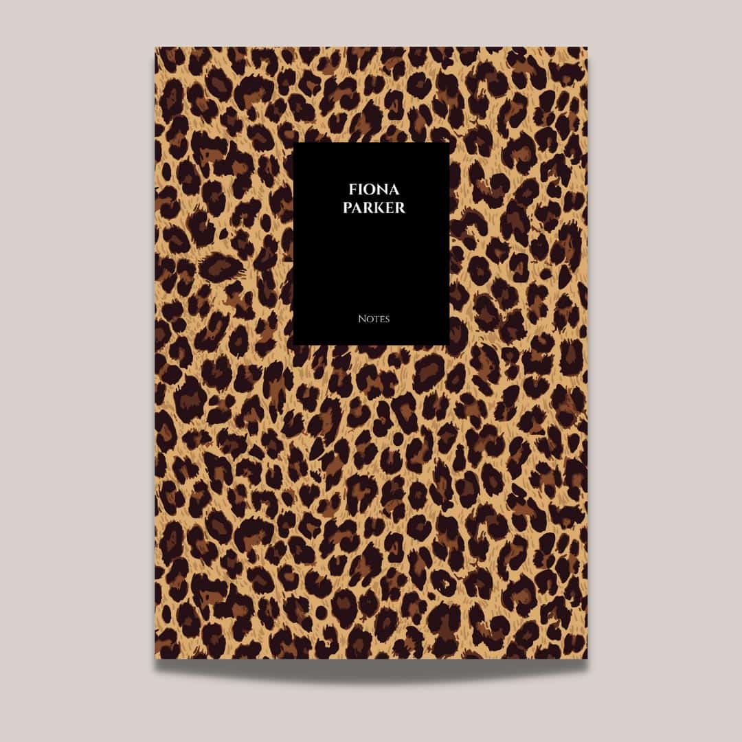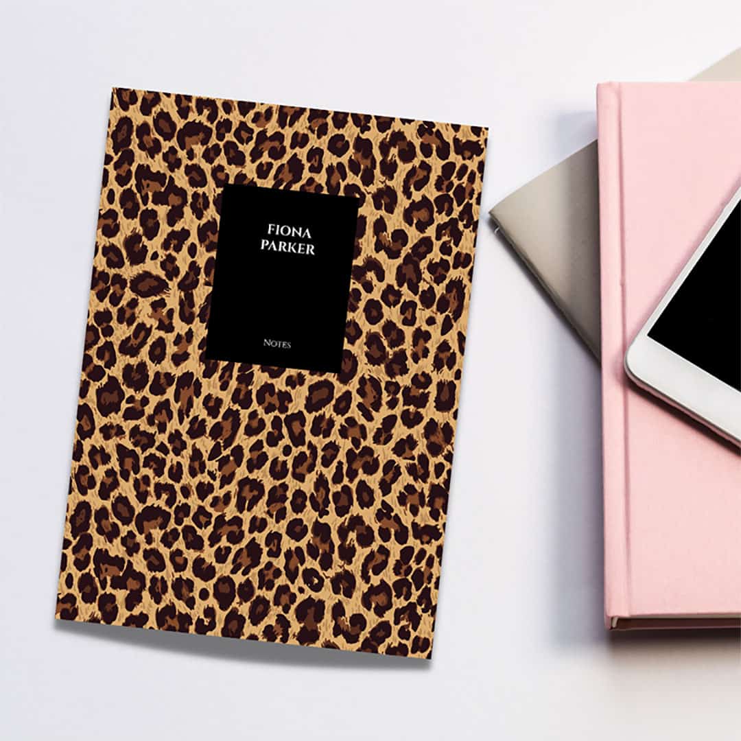 This customizable cheetah print notebook with the basic font is like modern meets minimalism.