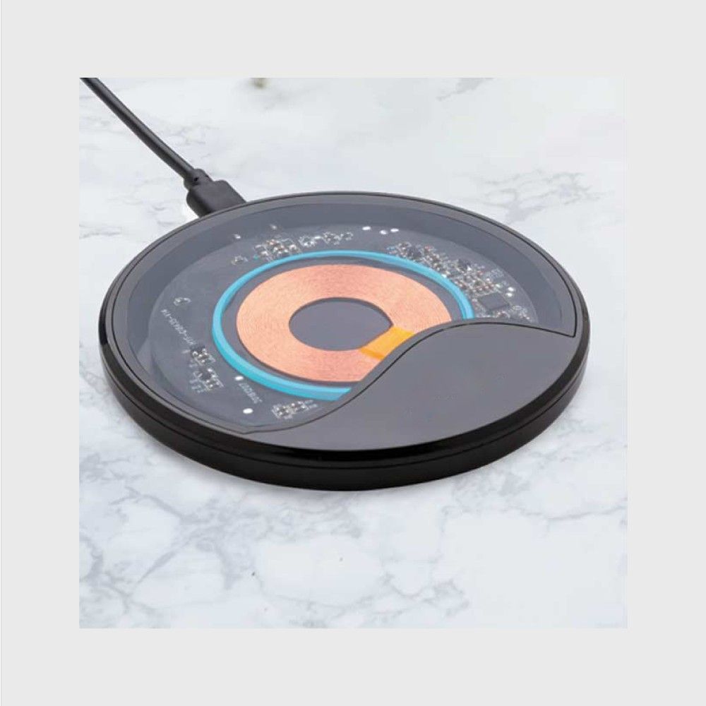 State of the art design wireless charger with transparent designs to expose the A+ grade quality components, high quality charging coil and blue LED charging light. The charging pad supports 10W fast and safe charging to charge your phone twice as fast as most other wireless chargers in the market. Input: 5V/2A Wireless Output: 9V/1.1 10W. Including 150cm USB to Type C cable for fast charging.